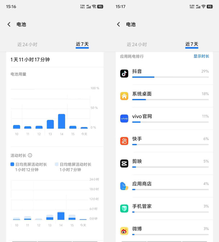 尤其是在之前国庆节,进行了一个粗造的待机测试,按上头「电板用量」的图标取消可知,vivo Y500基本上可以待机使用10多天之久。