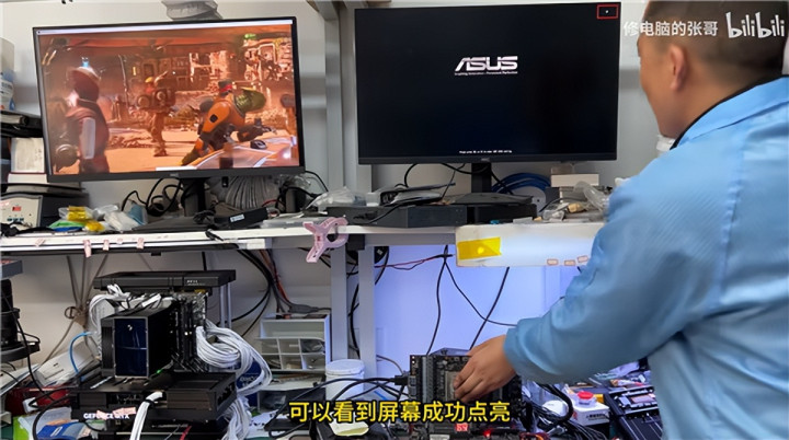 又经过多样修整,包括更换RTX 5090专用的散热垫、硅脂,最终这块卡神奇地平方点亮、启动了!