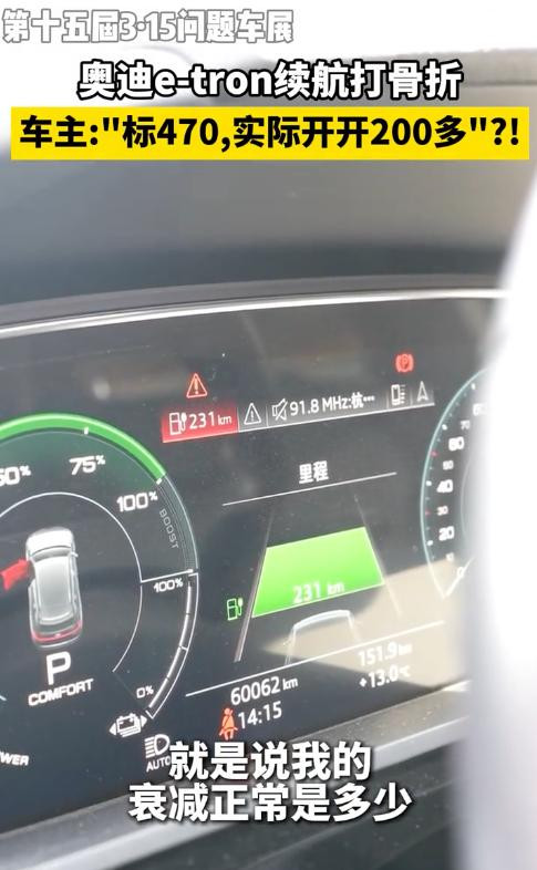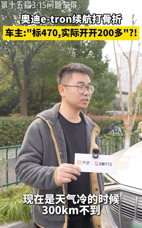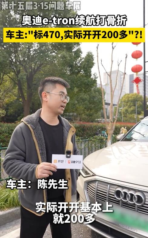 3 月 15 日海外消耗者权力日,由杭州交通 91.8 播送主持的第十五届 3・15 问题车展讲求举办,现场收罗无数遭受质料劣势的维权车主,多款豪华品牌车型麇集 “翻车”。其中,奥迪 e-tron因频发能源销亡、续航严重缩水等问题被车主现场投诉,成为本届车展焦点。