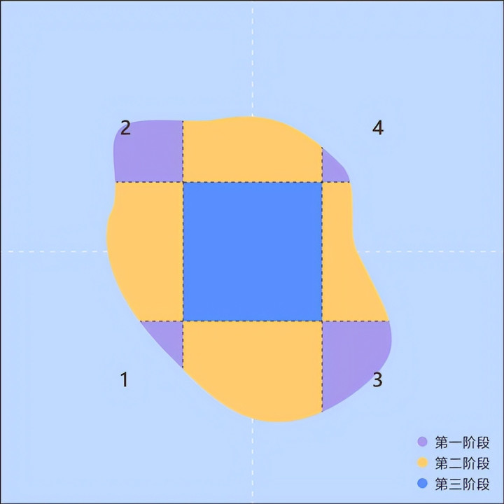 传统4激光: 激光1→固定区域A ┃ 激光2→固定区域B ┃ 激光3→固定区域C ┃ 激光4→固定区域D ┃ 区域负载不均 → 部分激光闲置