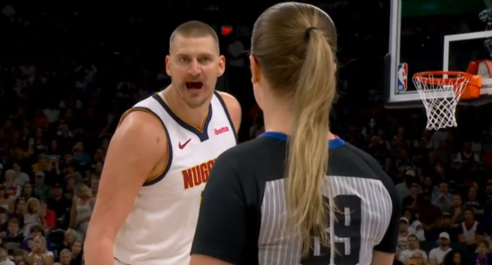 时期,约基奇不悦裁判延伸响哨,怒喷女裁判吃到技艺犯规,本赛季第三次吃T。