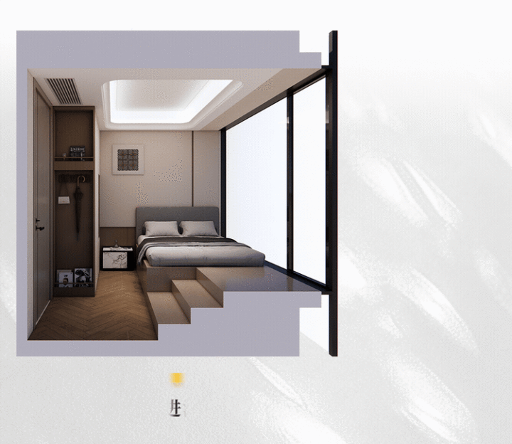 空间更显通透轩敞,采光面大幅延迟,床尾留出一个景不雅角,让主卧不再只是起居空间,更兼具松开、不雅景等复合功能。
