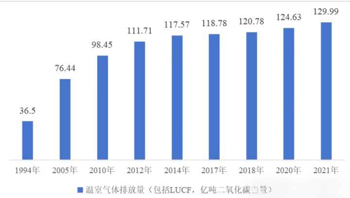 图为中国温室气体积年排放量。凭据公开信息整理。