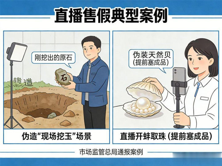 这种力度率直说,在和田玉这个圈子里照旧头一遭。前年4月,阛阓监管总局通报的两起典型案例就很能讲明问题。沿路是新疆和田某公司在直播中伪造“现场挖玉”场景,让消耗者误以为买到的是刚从土坑里挖出来的原石;另沿路是浙江诸暨某商家,把提前买好的成品珍珠塞进空珍珠蚌的蚌肉下,然后在镜头前“直播开蚌取珠”。这照旧不是会不会讲故事的问题了,而是赤裸裸地把乱来当主业。