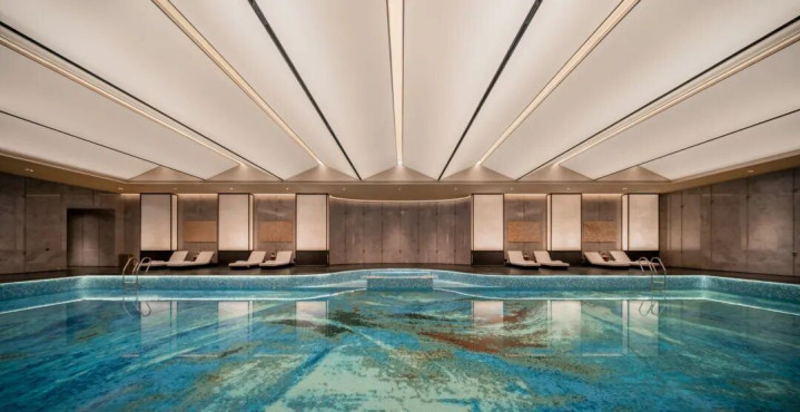 更令东谈主咋舌的是,仅288户的社区,却配备了约1500㎡的雅会会所,且涵盖恒温泳池、私宴厅、健身区等多元功能,号称杭州户均配套比最沸腾一档的新址。