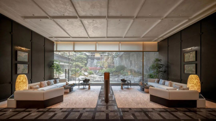 约63米宽、9.1米高的奢阔门头,与浙大同岁的百年罗汉松,开启五进归家序章;民众臻选近30种奢石铺陈公区,仅石材资本就超千万元。外立面首层摄取石材与奢石,二层以上为四面大面铝板搭配巨幅玻璃窗框,典雅通透。