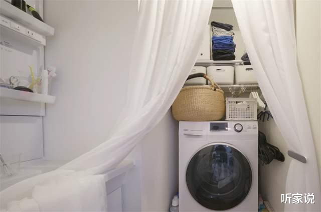 从床头旁的小门过问家中浴室,当面就是一个小小的洗衣间,洗衣机和上头的置物架用纱帘禁绝,平时开门透气的时候也不会合计乱,当今想想,家里用到纱帘的方位还真不少。