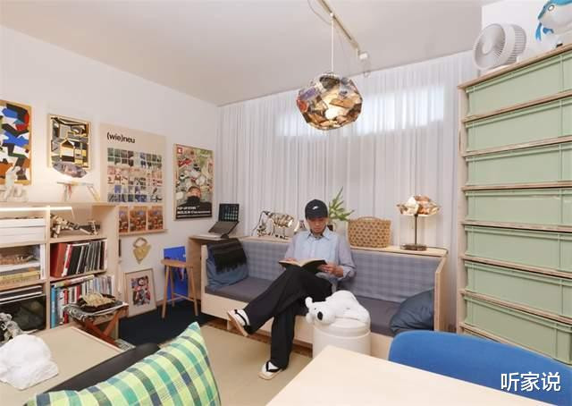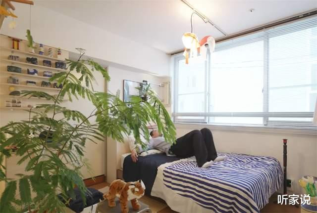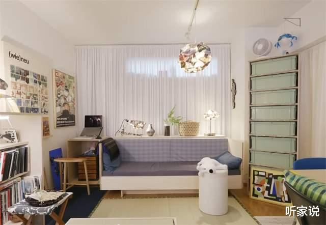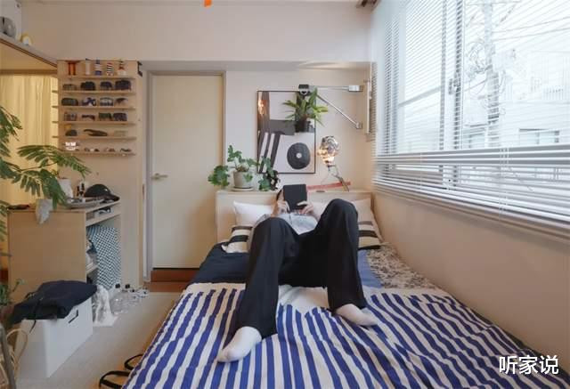 床铺放在窗户底下,白日的时候,自然光透过百叶窗照进家中,让整间房子都明亮堂得,自然户型莫得阳台,但领有这样一扇大窗,也能让蜗居的生计不会感到委屈。