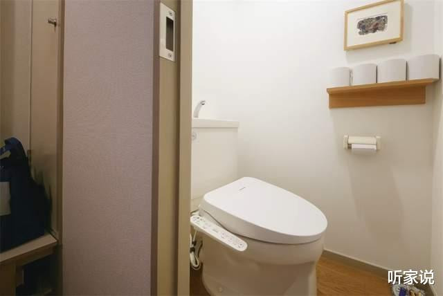 至于卫生间嘛,其着实一进门处,阿谁狭小收纳柜的傍边,就是个简毛糙单的无窗暗卫,但马桶水箱却作念了带水龙头的,既无须在如厕后跑回浴室洗手,又能控制洗手后的浑水冲茅厕,一举两得,更环保。