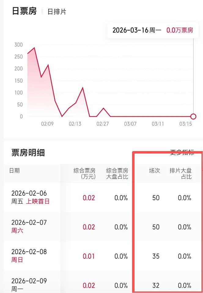 再稽查一下,该片从上映到当今,光是排片的场次也不少了。