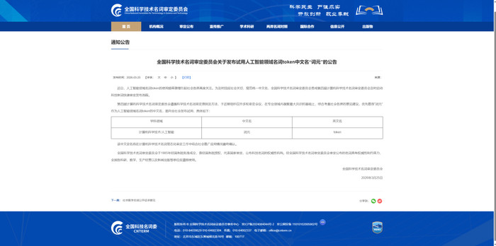 近日,东说念主工智能领域token一词使用频率激增,引起社会各界高度关注。为实时恢复社会关注,法子长入汉文名,寰宇科学本事名词核定委员会责成第四届寰宇策动机科学本事名词核定委员会实时开动科技新词快速核定发布历程。