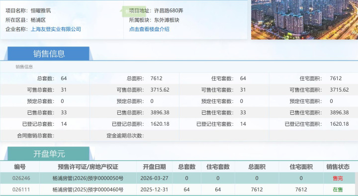 网上房地产露馅,64套房源现在已售33套,网签率超50%。