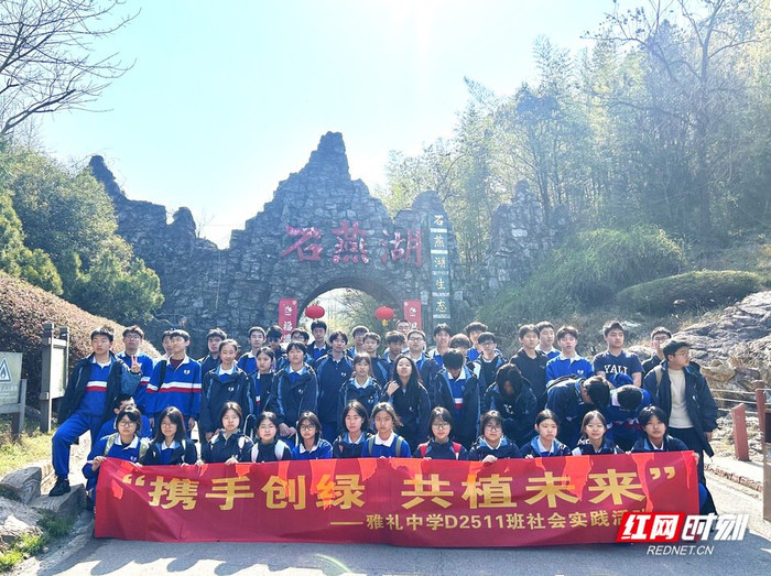 3月14日,长沙市雅礼中学D2511班举座同学走进石燕湖中学义务植树基地,开展“联袂创绿共植远改日”主题实行行径。