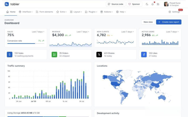 Tabler当今不光是套CSS,它我方有300多个组件,每个皆有明确“身份”。比如一个带小绿点的卡片,叫`card-status-top`,不是唐突加个class,而是径直告诉蛊卦者:“这是干事健康气象”,点进去看源码,连心跳检测的API接口皆预留了位置。主题切换也不再是改个class的事,2025年加了个叫`theme-switcher`的Web Component,页面里放一瞥就能在亮暗方法间滑动切换,连CSS变量皆没手动碰过。