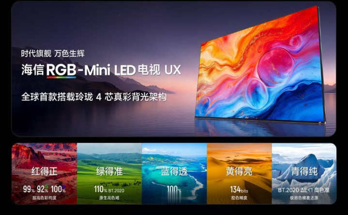庸碌Mini LED电视,用长远总认为画面色调不够鲜亮、容易泛白有光晕。海信UX2026款搭载了大家首创的玲珑4芯真彩背光,跳出传统红绿蓝三原色的镣铐,打破性地引入第4原色天青色,弥补了传统泄露在480-520纳米波段的自然“青色断层”,色域逃避率直接从100%飙升至110%BT.2020,比行业顶级的旗舰电视多呈现出1.2亿种极致色调。这意味着当咱们看世界杯时,阿根廷队服的蓝与白会愈加纯洁、分明;绿茵场也不再是糊成一派的绿,而是能看清浅深交错的草叶档次;况且这届比赛很多场都在当地时辰的傍晚,到时能清理会爽看到天边霞光从紫到青的隐秘过渡,看比赛时的将心比心感更强。
