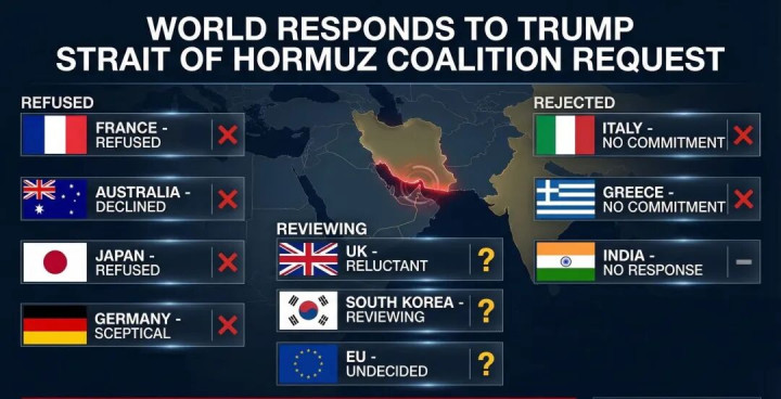霍尔木兹海峡已莫得船只通航,好意思国有点急了,同样向盟友施压条目集体护航。