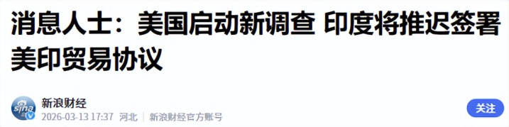 但特朗普没料想,301考核的音问仍是公布,印度就坐窝作念出了回话,成功晓示推迟买卖契约的签署工夫,而况一推便是数月,莫得给出任何具体的工夫表,颠倒于把“皮球”又踢回给了好意思国,让好意思国堕入被迫恭候的地方。