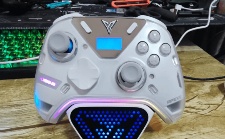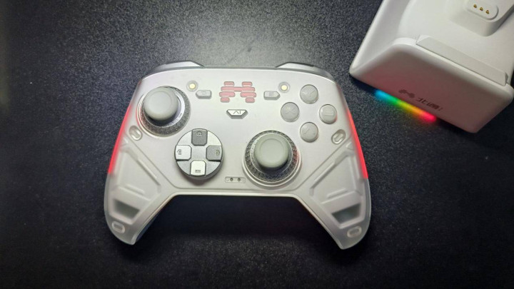 罗致TMR磁变阻摇杆,阻尼适中,定位较精确,无彰着漂移;配备透明双切扳机,可切换线性与微动花式,线性扳机无阻尼感,不适当赛车游戏,微动扳机触发委宛。震感罗致非对称摆锤马达,反馈一般,不如高端手柄精细。十字按键偏松,按压手感与主按键一致性差,玩射击游戏摇杆操控畅达,但格斗游戏中十字键松动会影响操作精度。