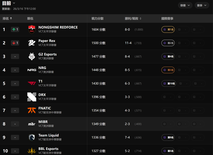 赛区实力分数:太平洋1518(教训为第又名)、好意思洲1454(着落又名)、EMEA1376、CN赛区1252。